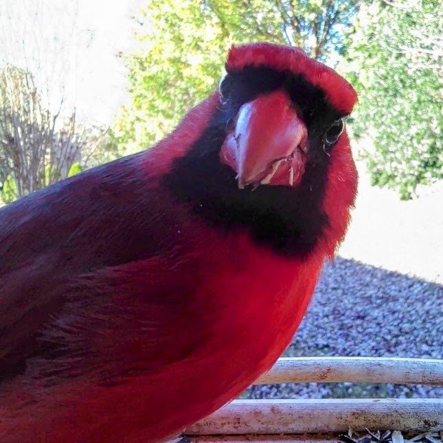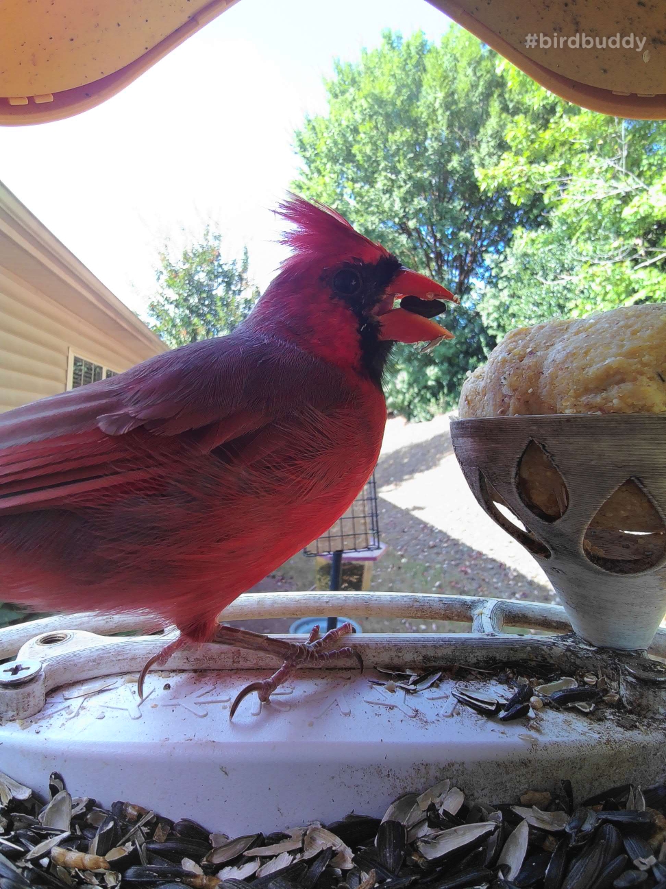 More birds are visiting my Bird Buddy at our new home, including this peanut-loving Cardinal.