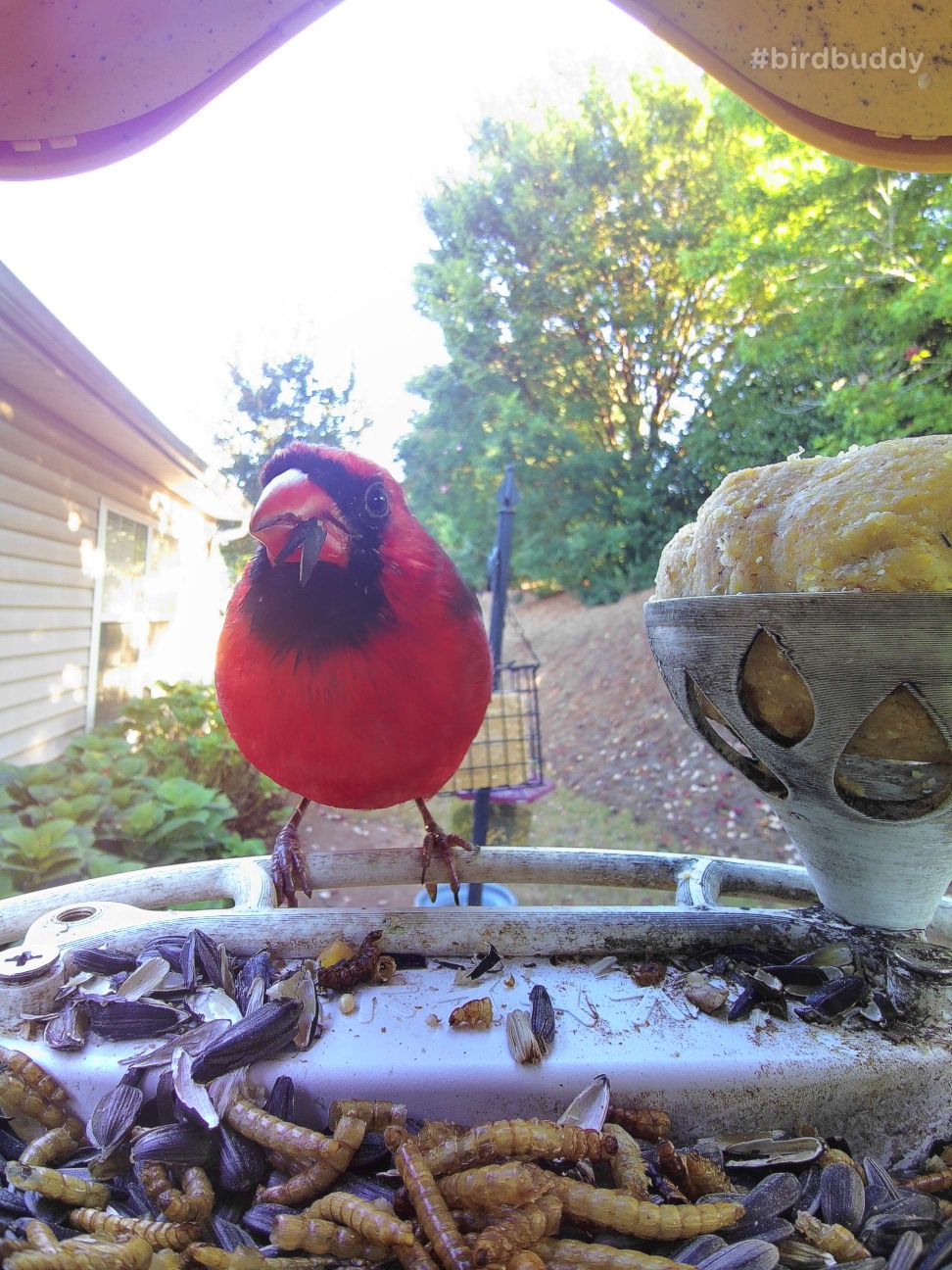 I’ve seen Cardinals flitting about on our patio since we moved in. This is the first one to visit my Bird Buddy. π¦ππ οΈ