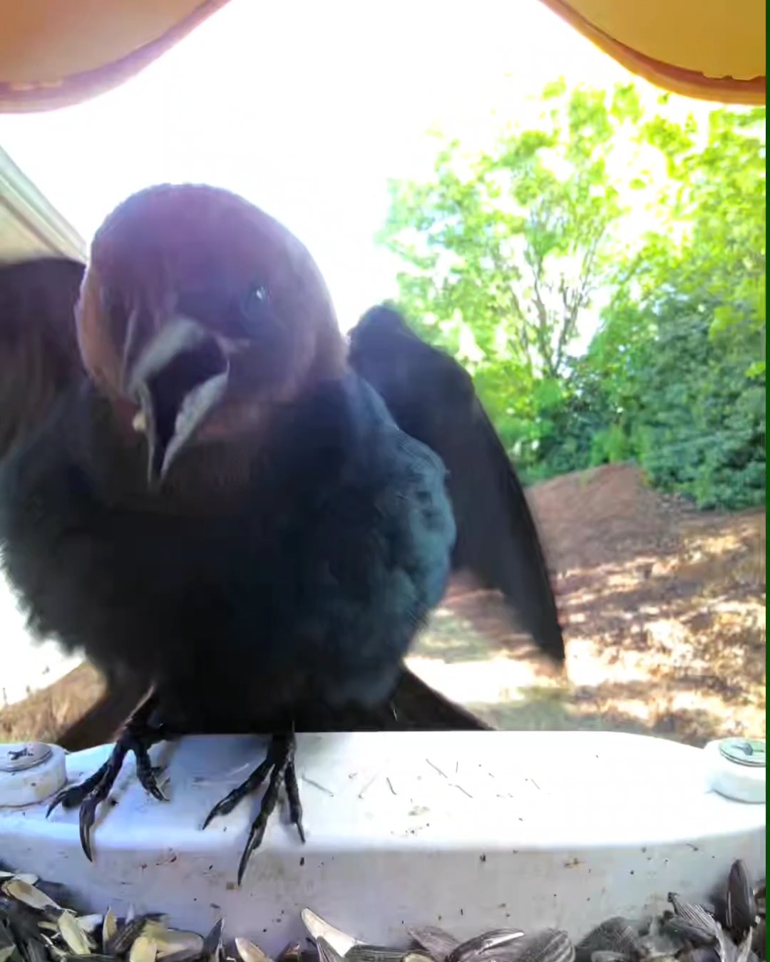 This brave little Chickadee interrupted a Cardinal’s lunch. (Had to frame grab this from a Bird Buddy video)