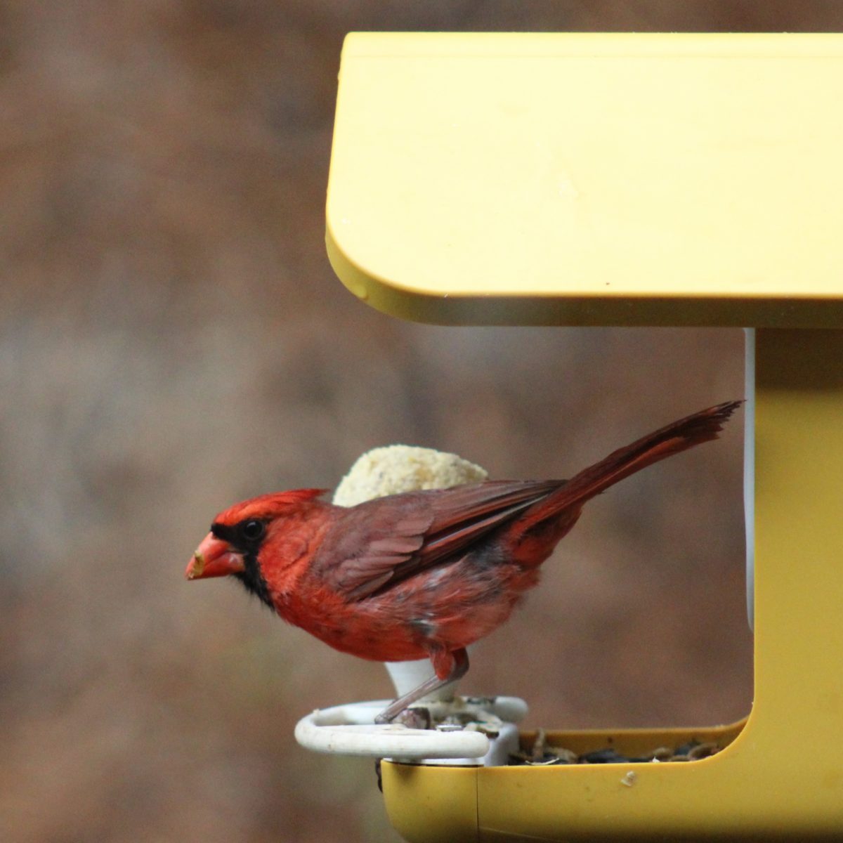 More birds are visiting my Bird Buddy at our new home, including this peanut-loving Cardinal.