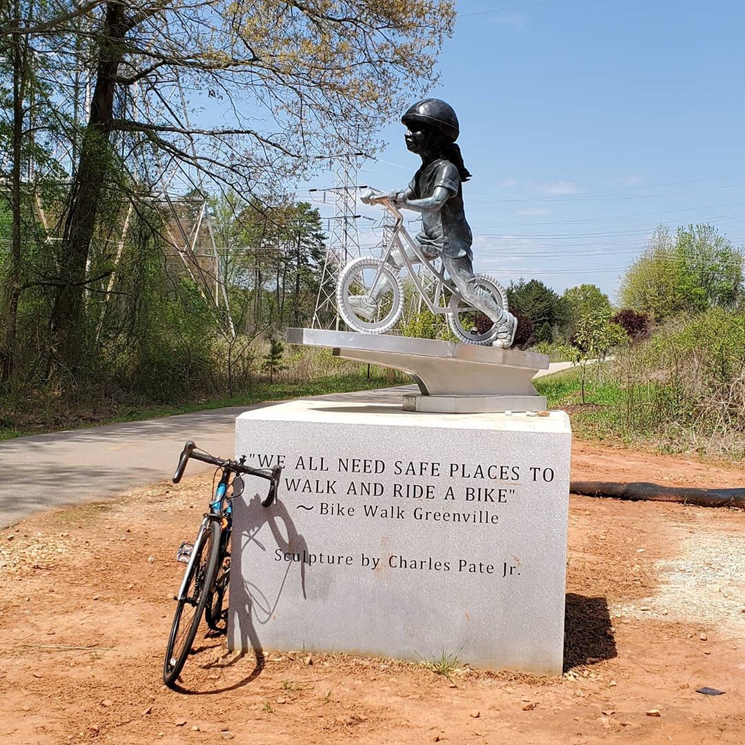 Rode a mountain bike trail in Greenville, SC. Sliding Rock Creek Trail is not well maintained. Too many roots on the path, and I had to climb over a downed tree. It was a beautiful day, so I enjoyed the time outdoors anyway.