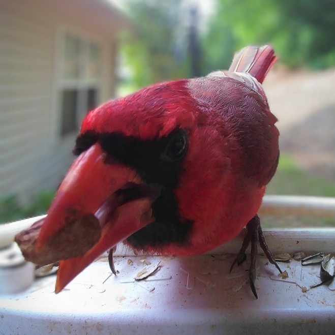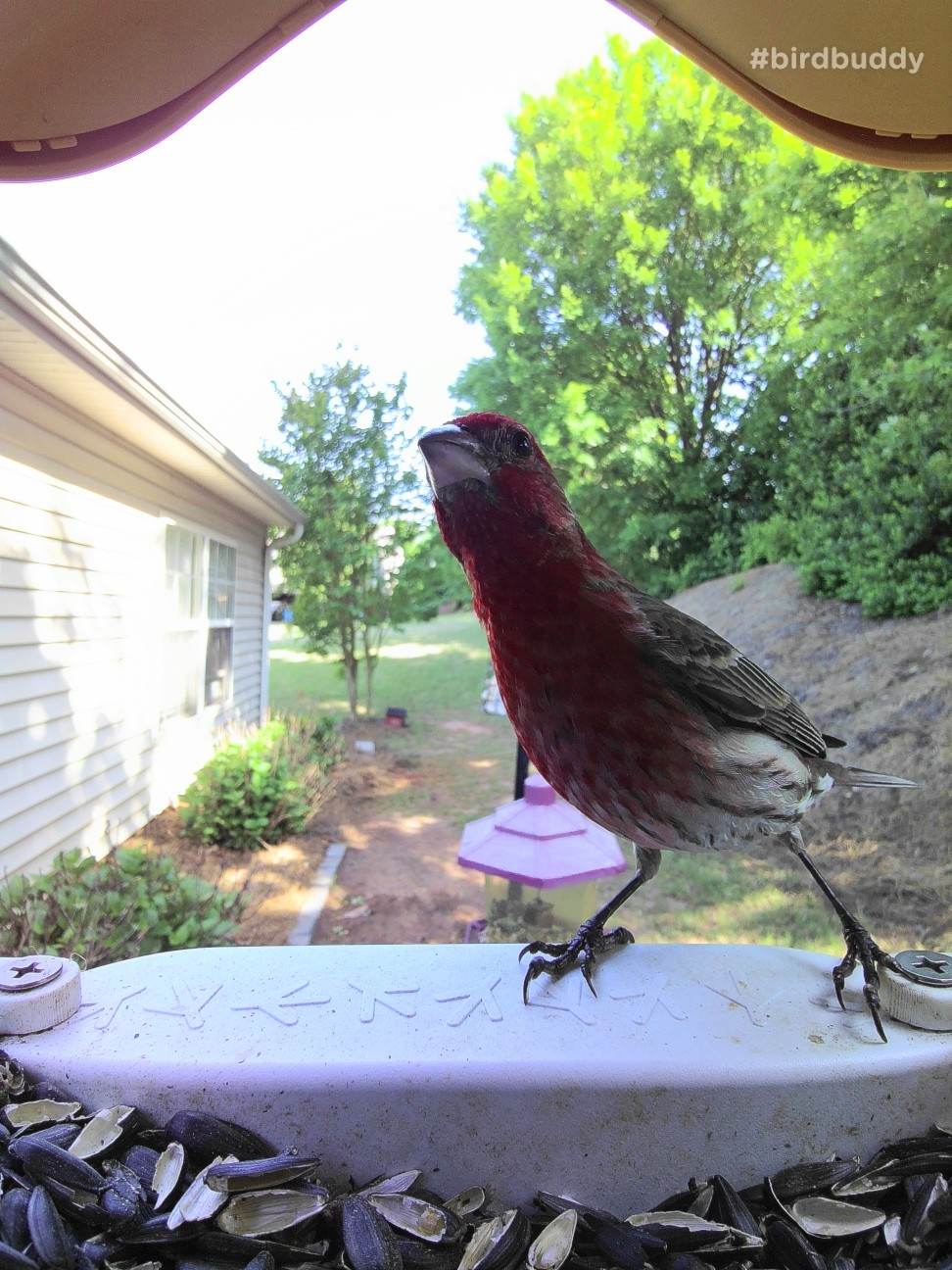 More birds are visiting my Bird Buddy at our new home, including this peanut-loving Cardinal.