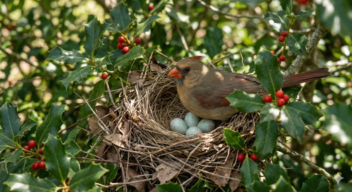 Unlike bluebirds or wrens that seek out cavities, cardinals are open-cup nesters that prefer the breezy security of a dense thicket or a sturdy evergreen branch. They thrive in the hidden forks of shrubs and small trees where they have a clear view of approaching threats while remaining tucked away under a canopy of leaves.