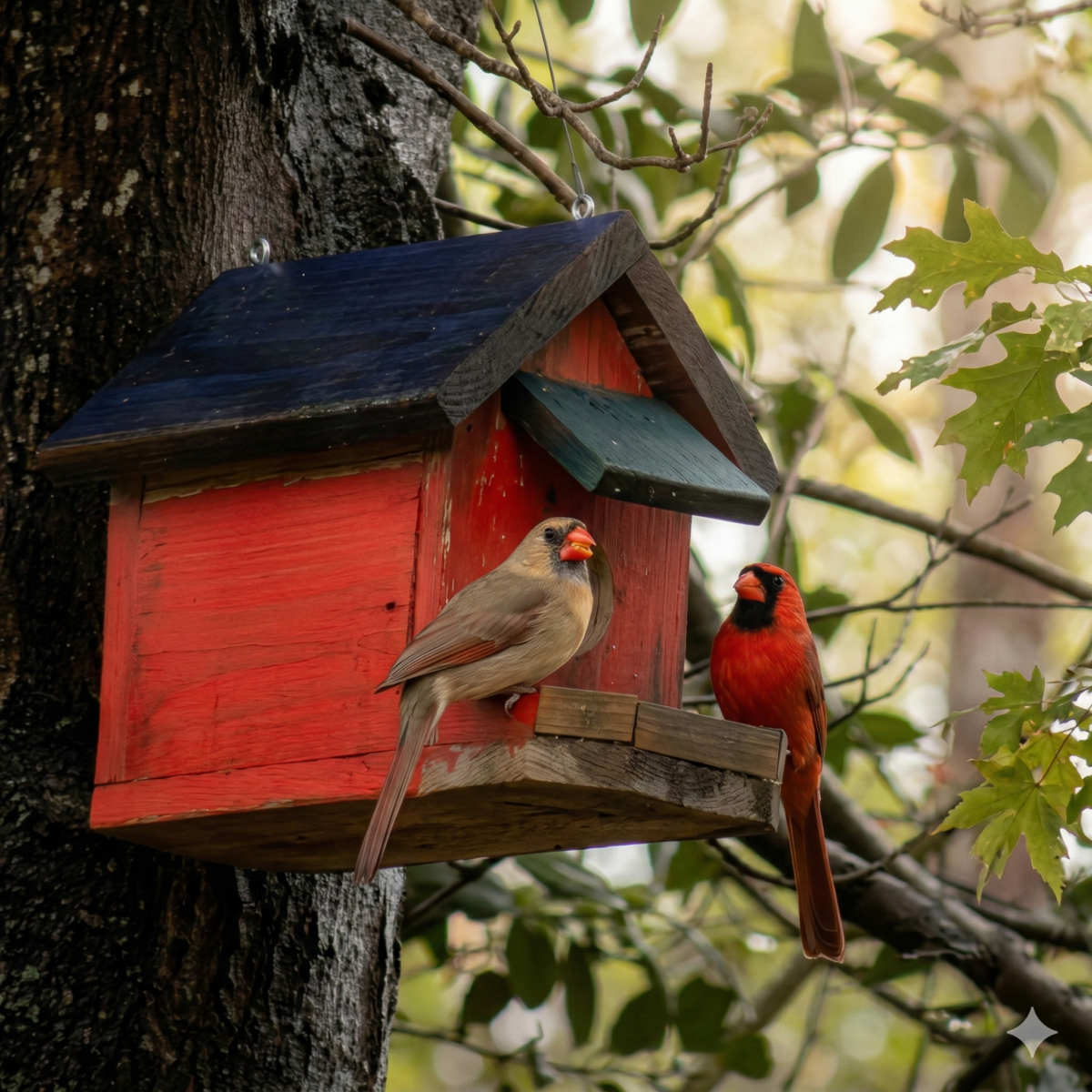 While that rustic red birdhouse makes for a stunning photograph, it won’t be hosting a cardinal family anytime soon. Northern Cardinals are famously picky about their real estate and strictly avoid enclosed birdhouses.
