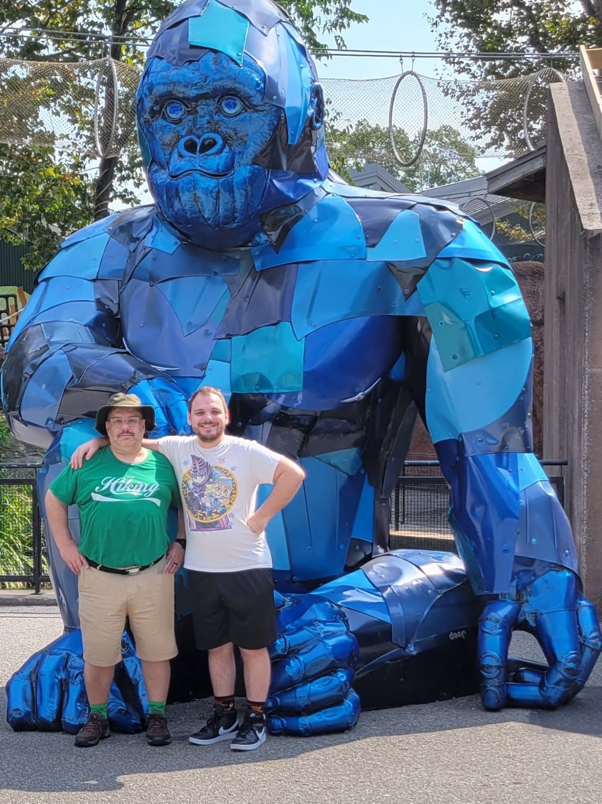 This blue gorilla sits 13-feet tall and 12-feet deep! It’s constructed from around 55 salvaged car hoods. These car parts retain their original factory paint.