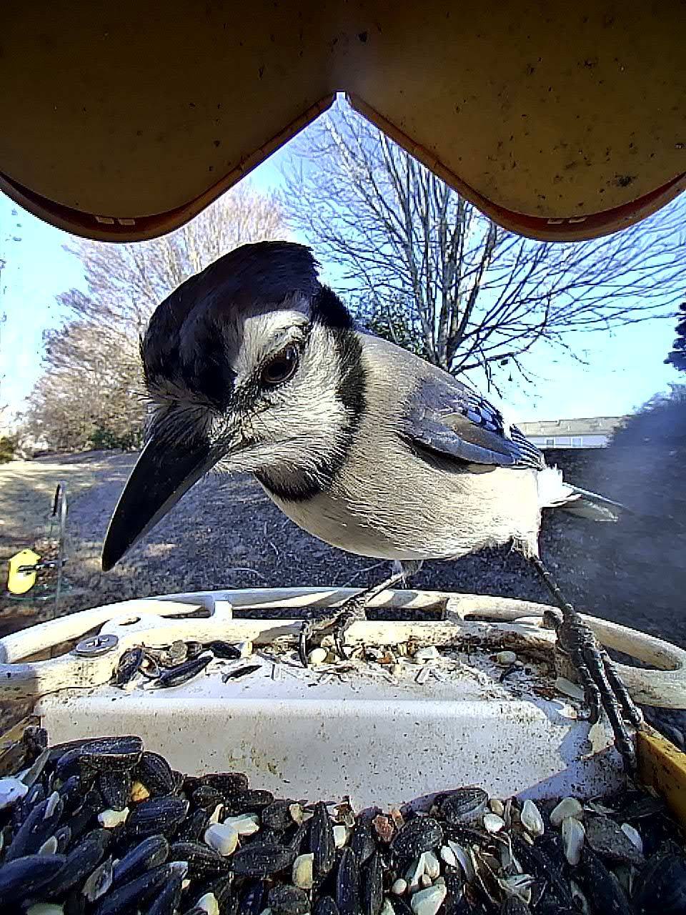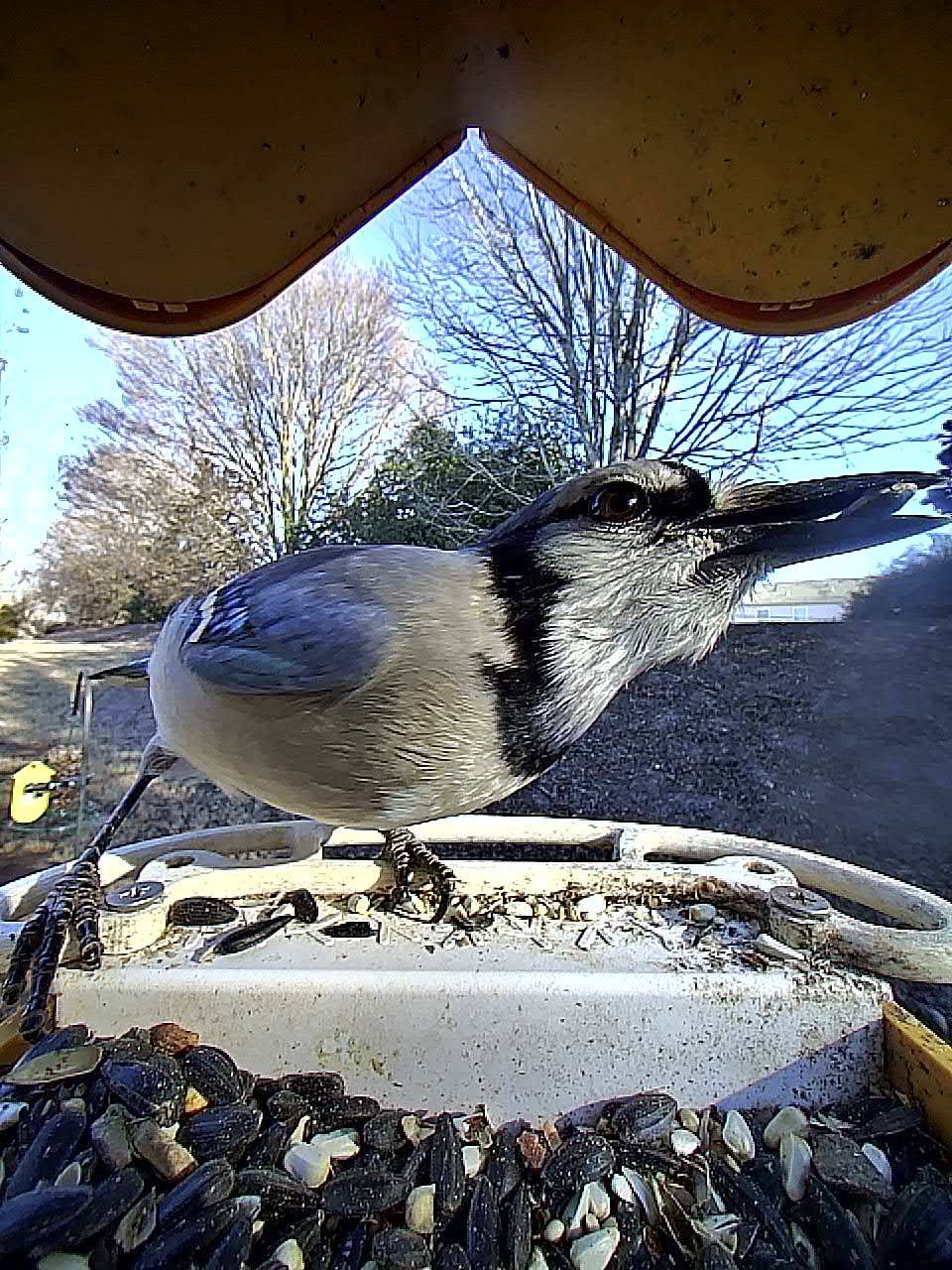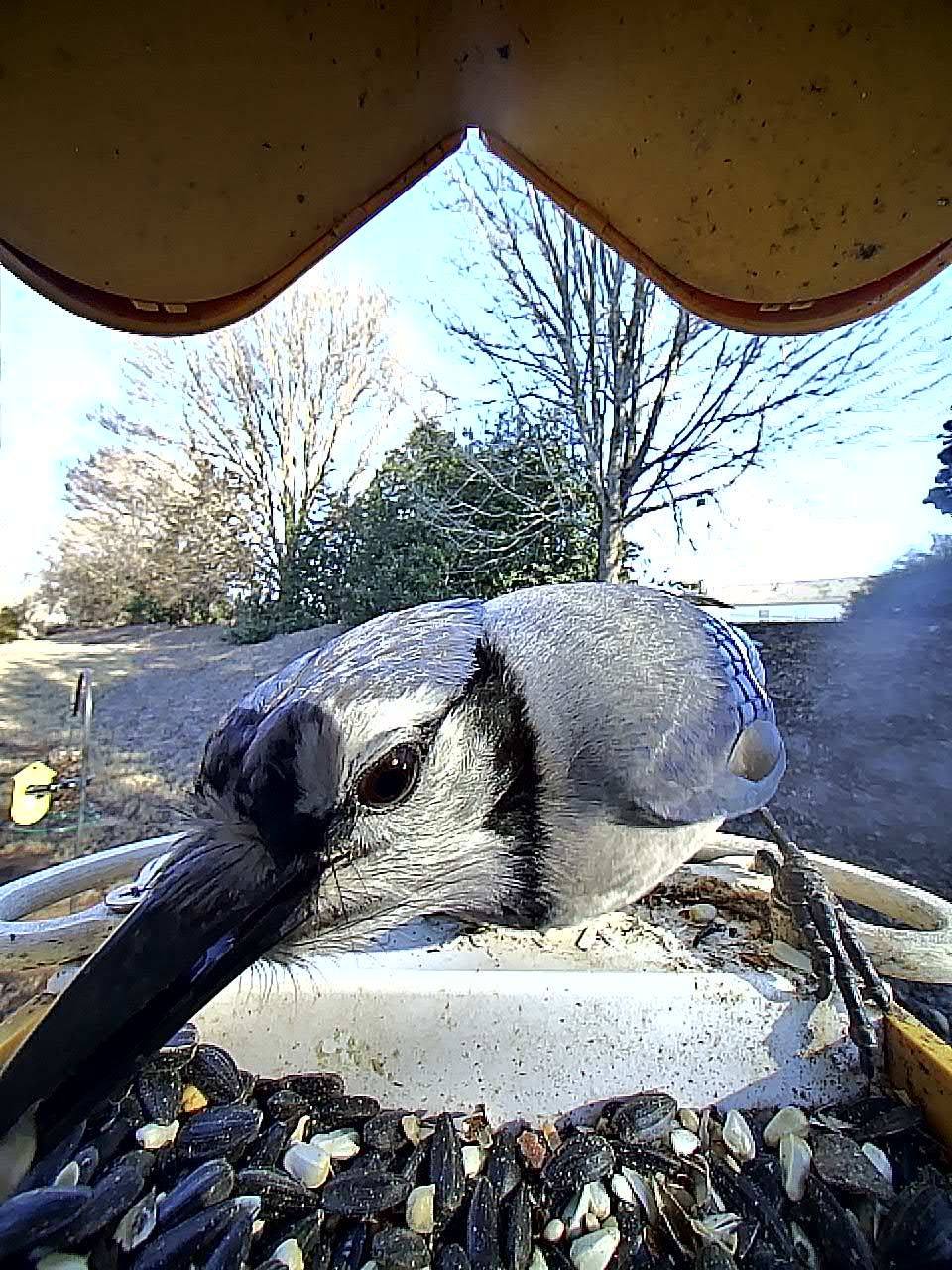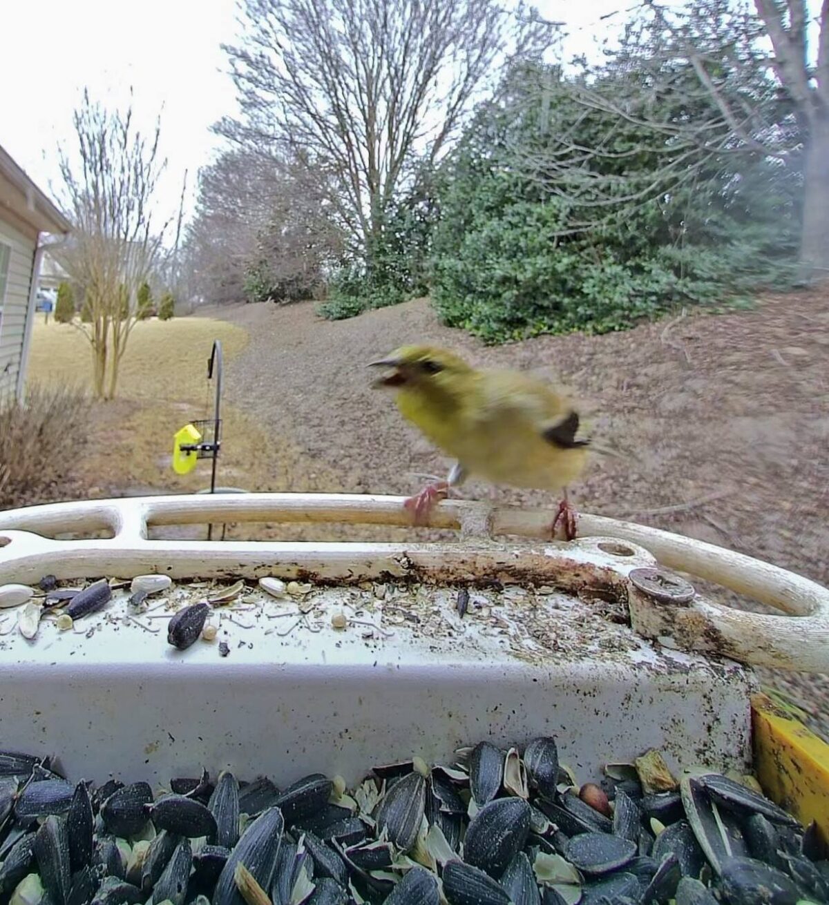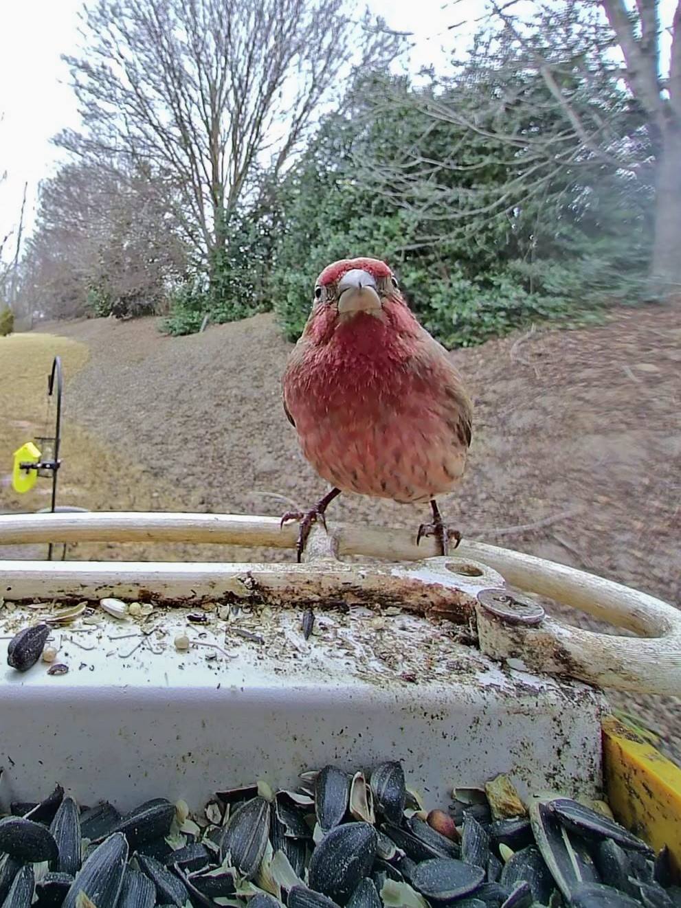 More birds are visiting my Bird Buddy at our new home, including this peanut-loving Cardinal.