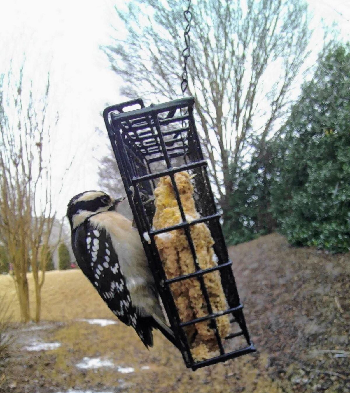 This Downy Woodpecker came to my #birdBuddy, started eating peanuts π₯ from the tray and then noticed the suet.