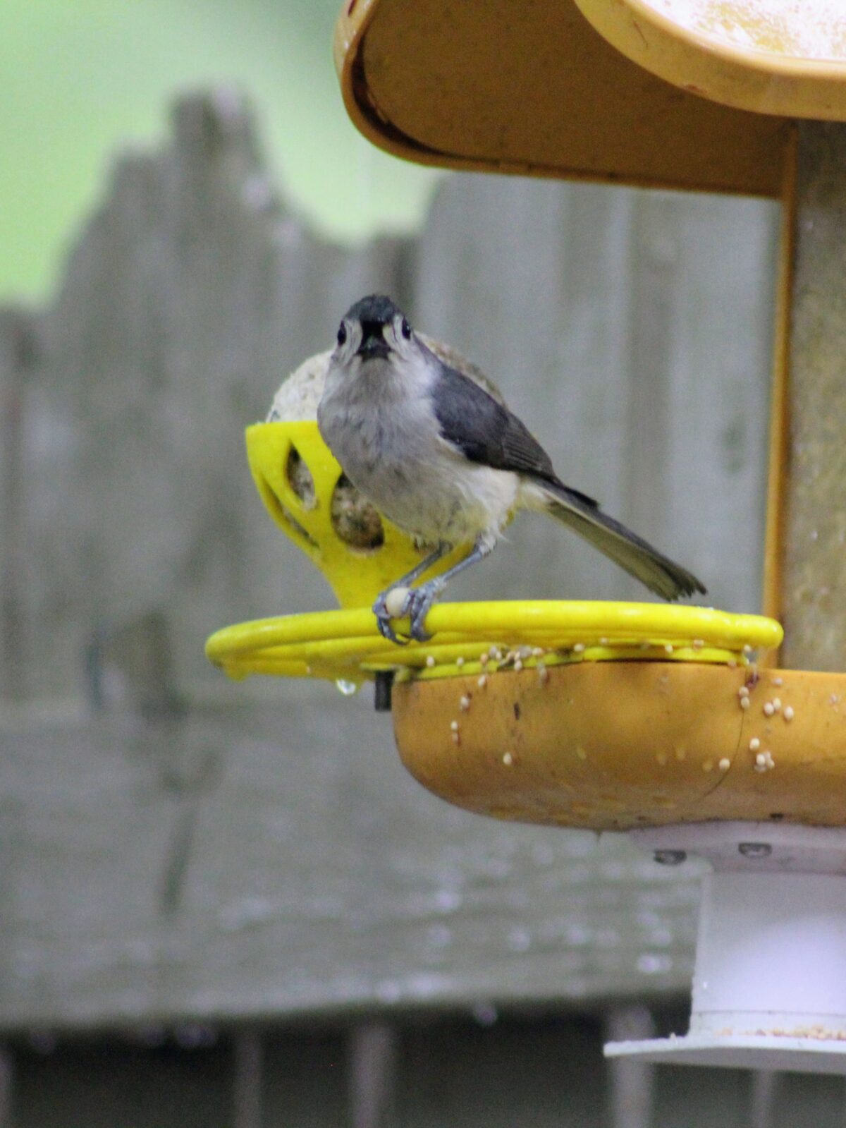 Last evening, several birds stopped by when the camera was out of the feeder. Luckily, I had my DSLR camera at my side to catch their visits.