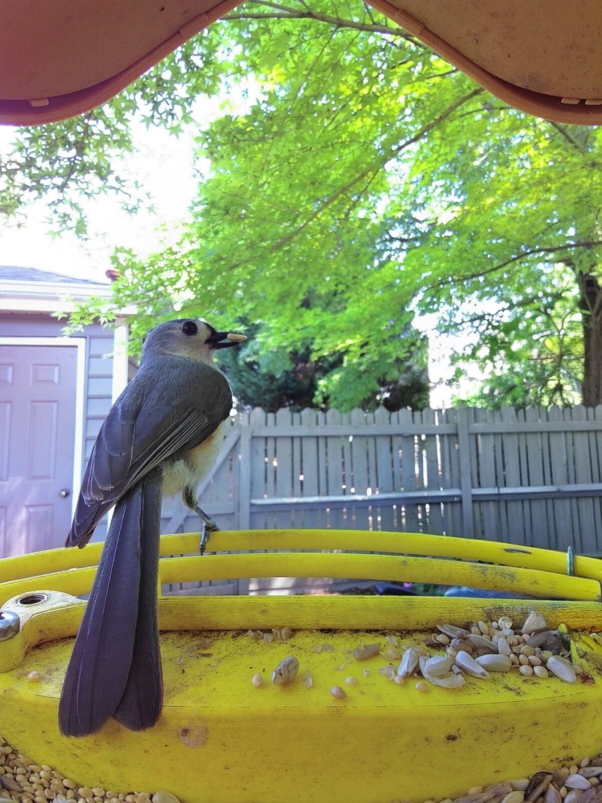 Caught this little Tufted Titmouse enjoying a snack! Their cheerful calls always bring a smile to my day. 🐦 What a sweet visitor!