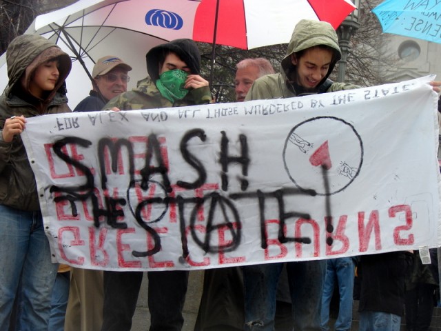 I think these young people were a little confused. Most of the people around them were not anarchists.