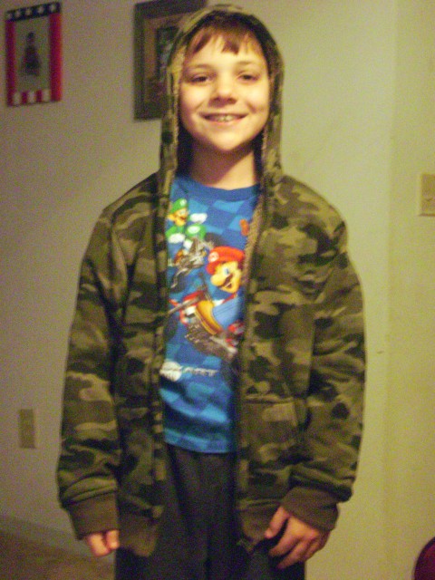TJ got a new Army coat for Christmas