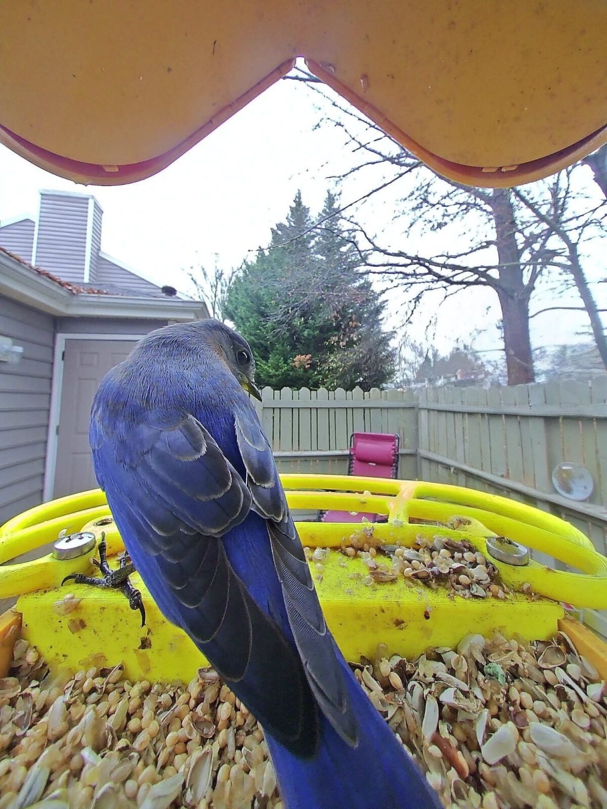 More birds are visiting my Bird Buddy at our new home, including this peanut-loving Cardinal.