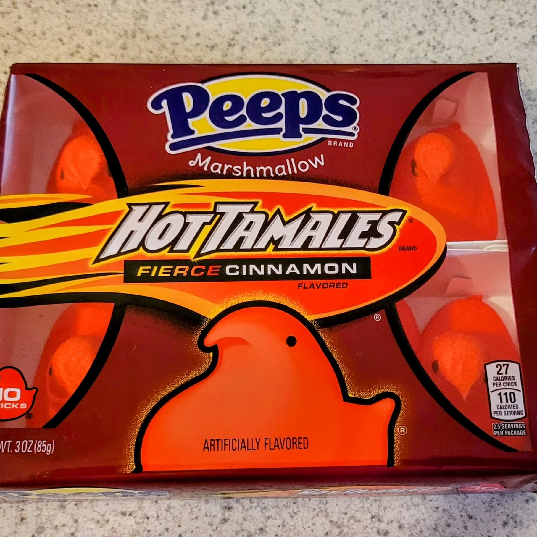 Hot Tamales Peeps March 12, 2023 Jason No Comments I’m a little disappointed with these Peeps. They’re not even close to being as spicy as Hot Tamales! Categories: Easter Food & Beverages Tags: Peeps