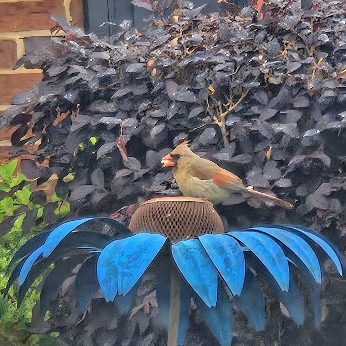 More birds are visiting my Bird Buddy at our new home, including this peanut-loving Cardinal.