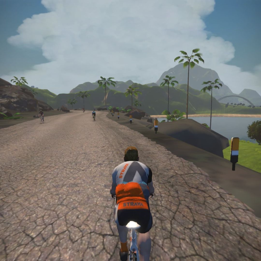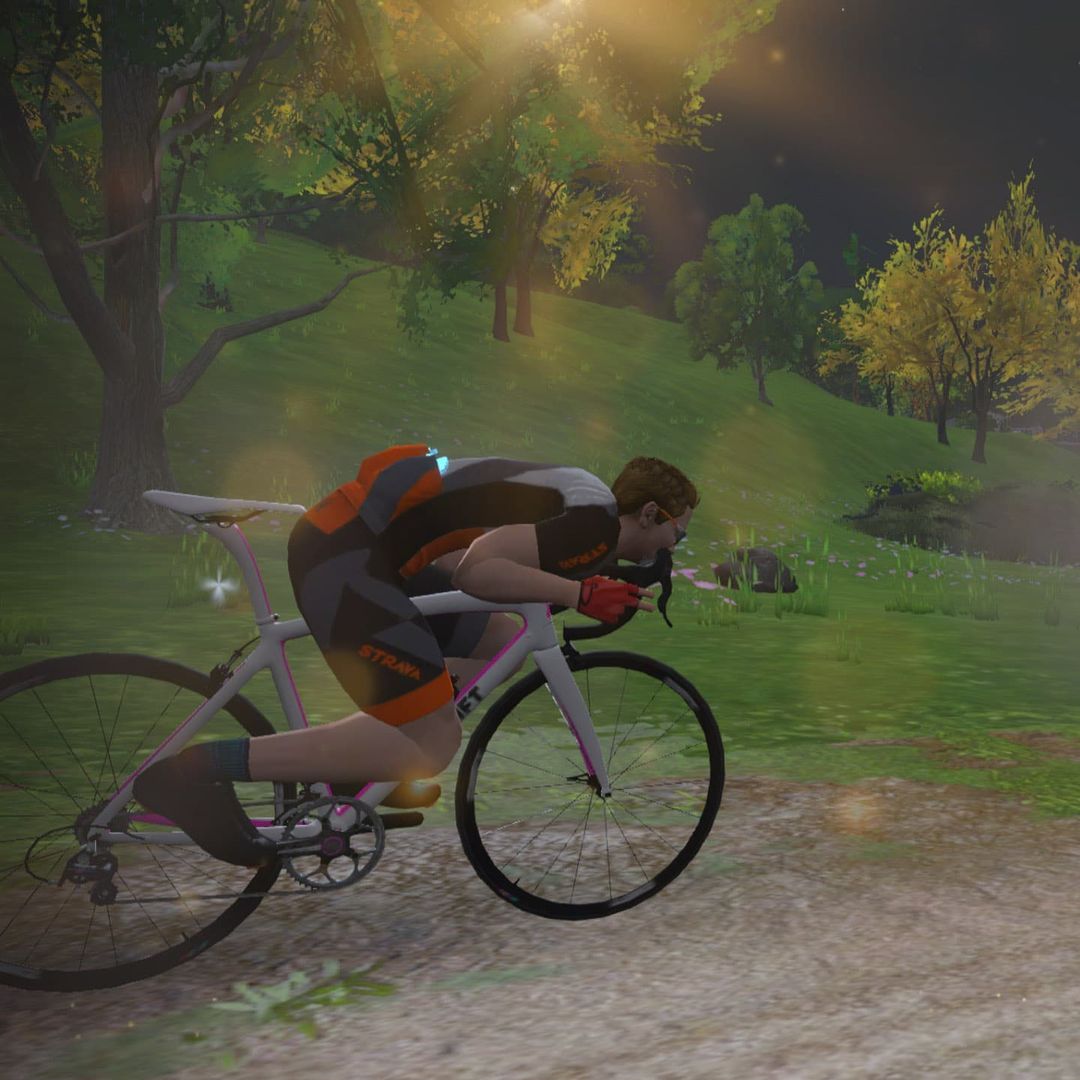 The attention to detail in Zwift is amazing. Pay attention to the scenery and sometimes you’ll see animals grazing or running through fields, like this white deer.